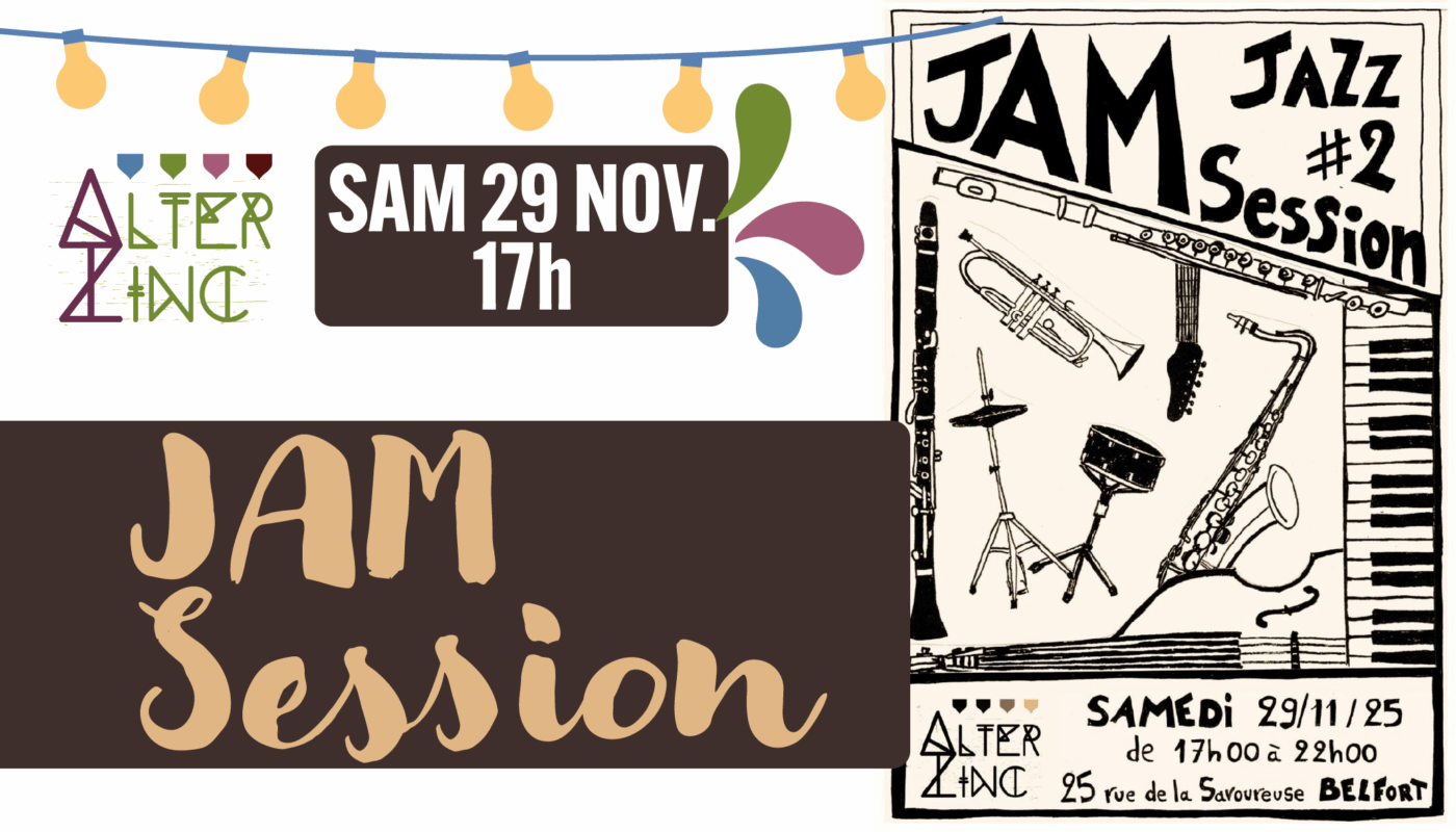 Samedi 29 novembre 2025, AlterZinc vous invite à sa deuxième Jam Session de 17h à 22h, au 25 rue de la Savoureuse, 90000 Belfort (ancien Bar Atteint).