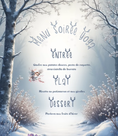 Inscription obligatoire, pour le yoga, le repas ou les deux.